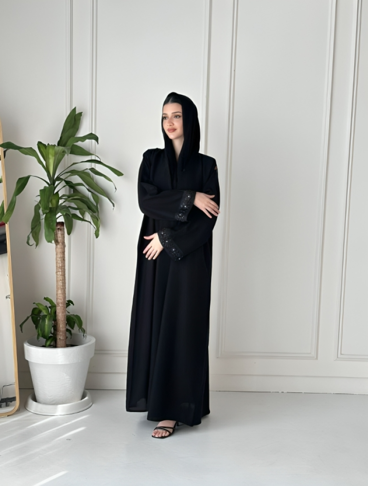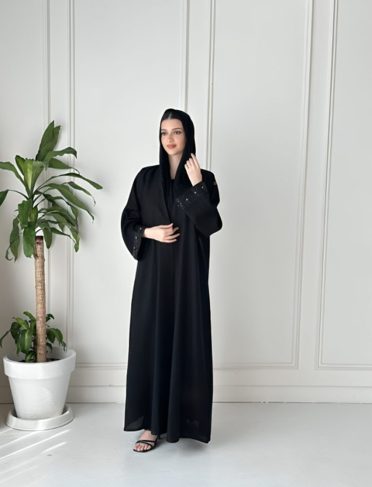 عباية سوداء مميزة تم تصميمها بتصميم أنيق ، تأتي العباية بتطريز أسفل الكم يعطي لكي أناقة وجمال ، العباية مصنوعة بخامة عالية الجودة ، تأتي بلونها الأسمر الفخم الذي يزيد من رونقك وأناقتك ، احصلي على هذه العباية من  متجر ديفا الذي يقدّم لكِ عبايات بتفاصيل فاخرة تليق بكل امرأة تعشق التميز والجودة.