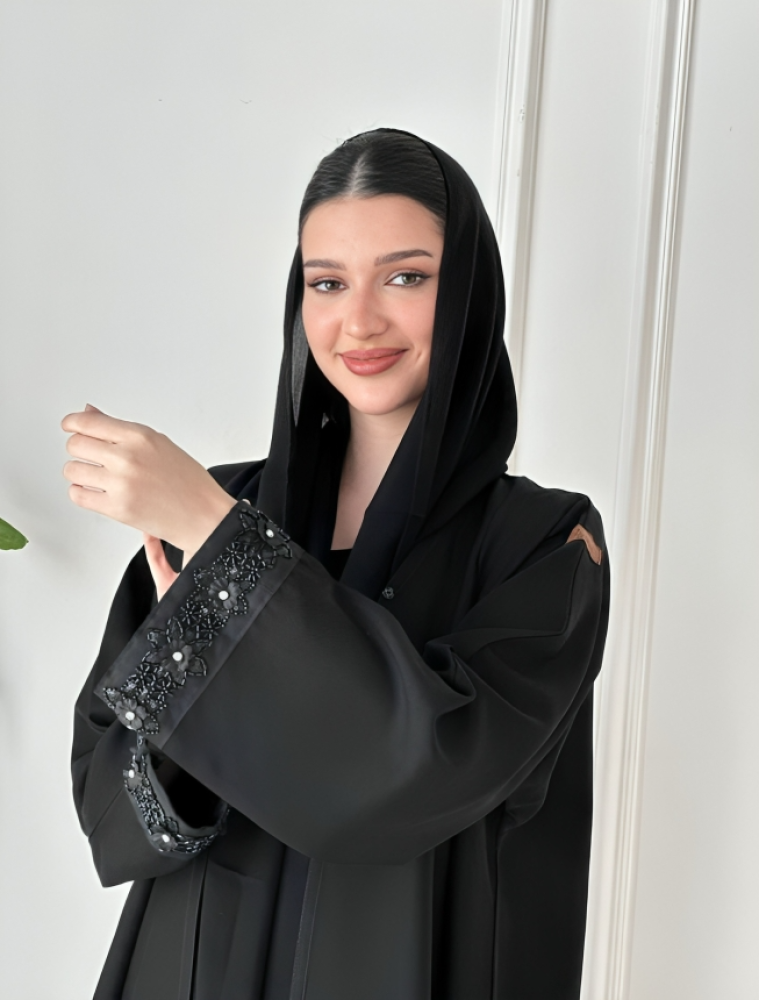 • تم تصميم العباية بطريقة مميزة تعكس جمالك الداخلي .