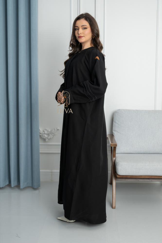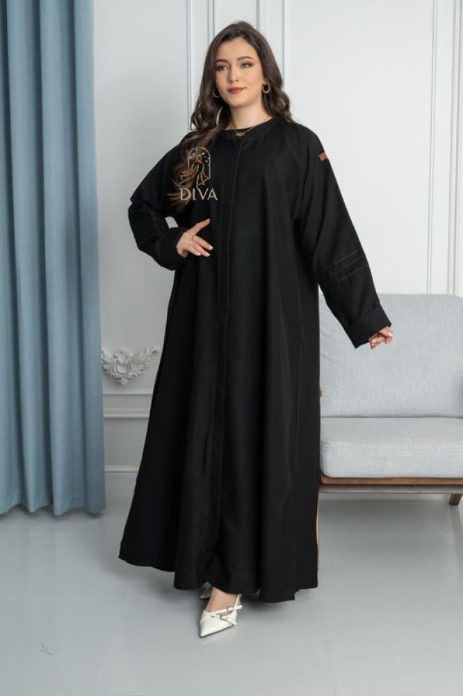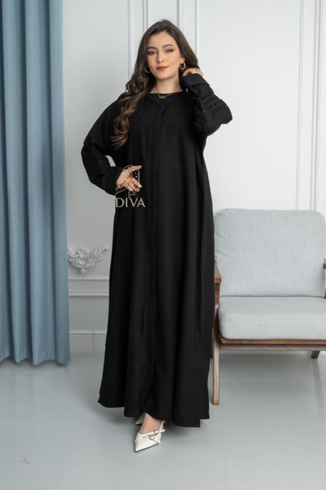 عباية للدوام تتميز بأناقة يومية و لمسة ناعمة من متجر ديفا ، إذا كنتِ تبحثين عن قطعة أنيقة وعملية في نفس الوقت ، فهذه العباية هي الخيار المثالي لإطلالة مريحة ومتزنة ، بلون أسود راقٍ وقصة نص كلوش عملية ، تمنحك حضورًا أنثويًا مميزًا في كل خروجة صباحية أو حتى عند ذهابك للعمل ، وذلك بفضل تفاصيلها الناعمة بخيوط القيطان من منتصف الأكمام مما تضيف لمسة ناعمة وأنيقة تليق بروتينك اليومي دون مبالغة.