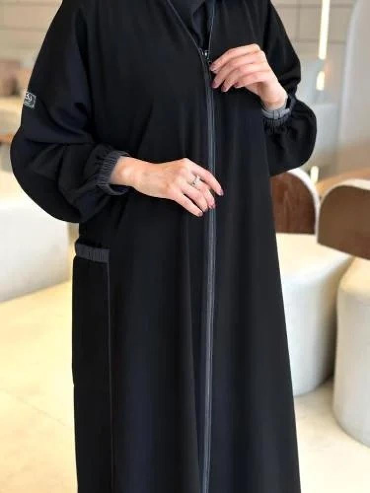 - عباية عملية وعصرية تناسب ذوق المرأة الراقية التي تحب التفاصيل البسيطة والمريحة.